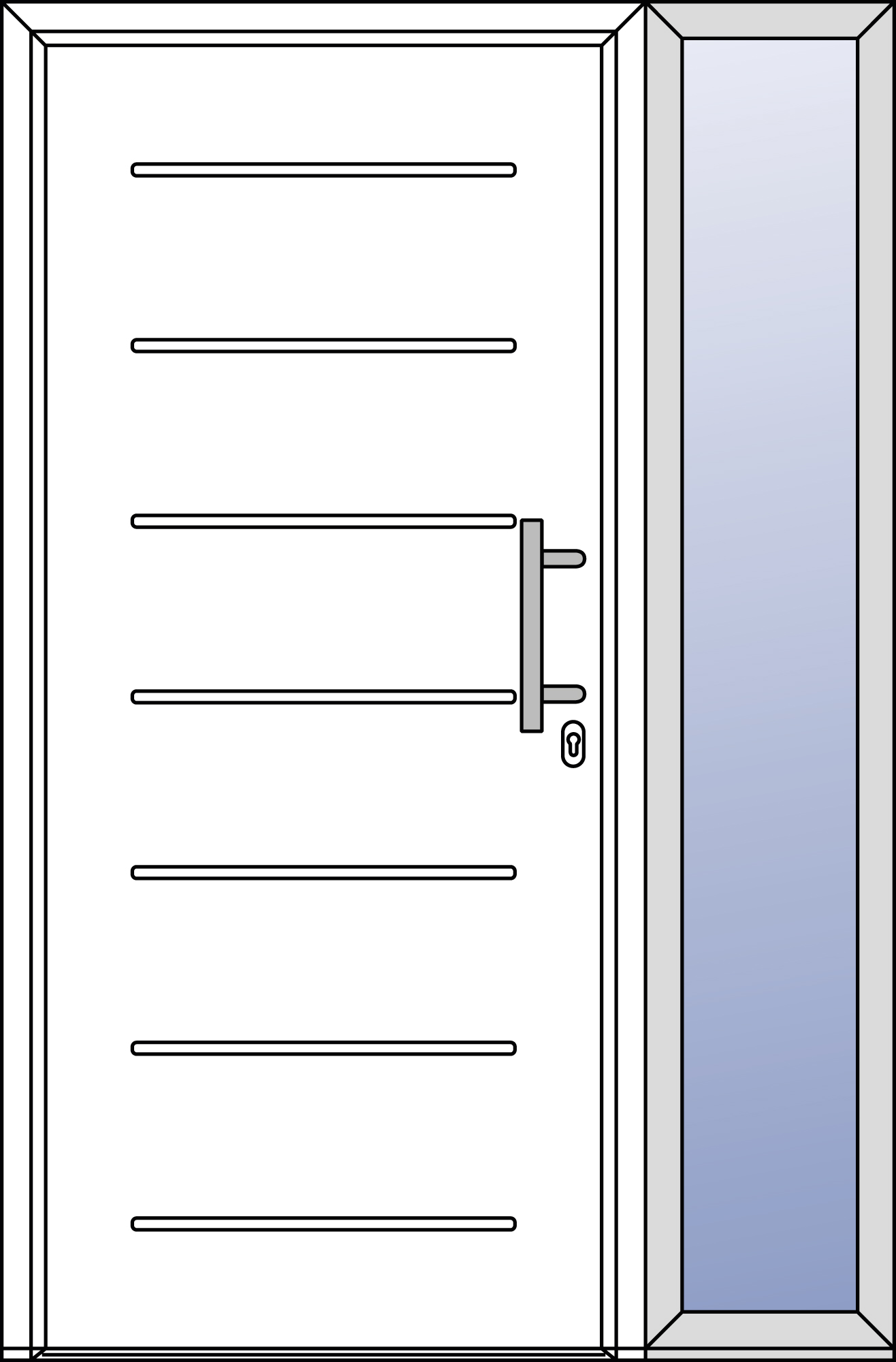 Das flügelüberdeckende Türblatt sowie verschiedene Motive, Farben und Verglasungen sorgen für ein stimmiges Gesamtbild.