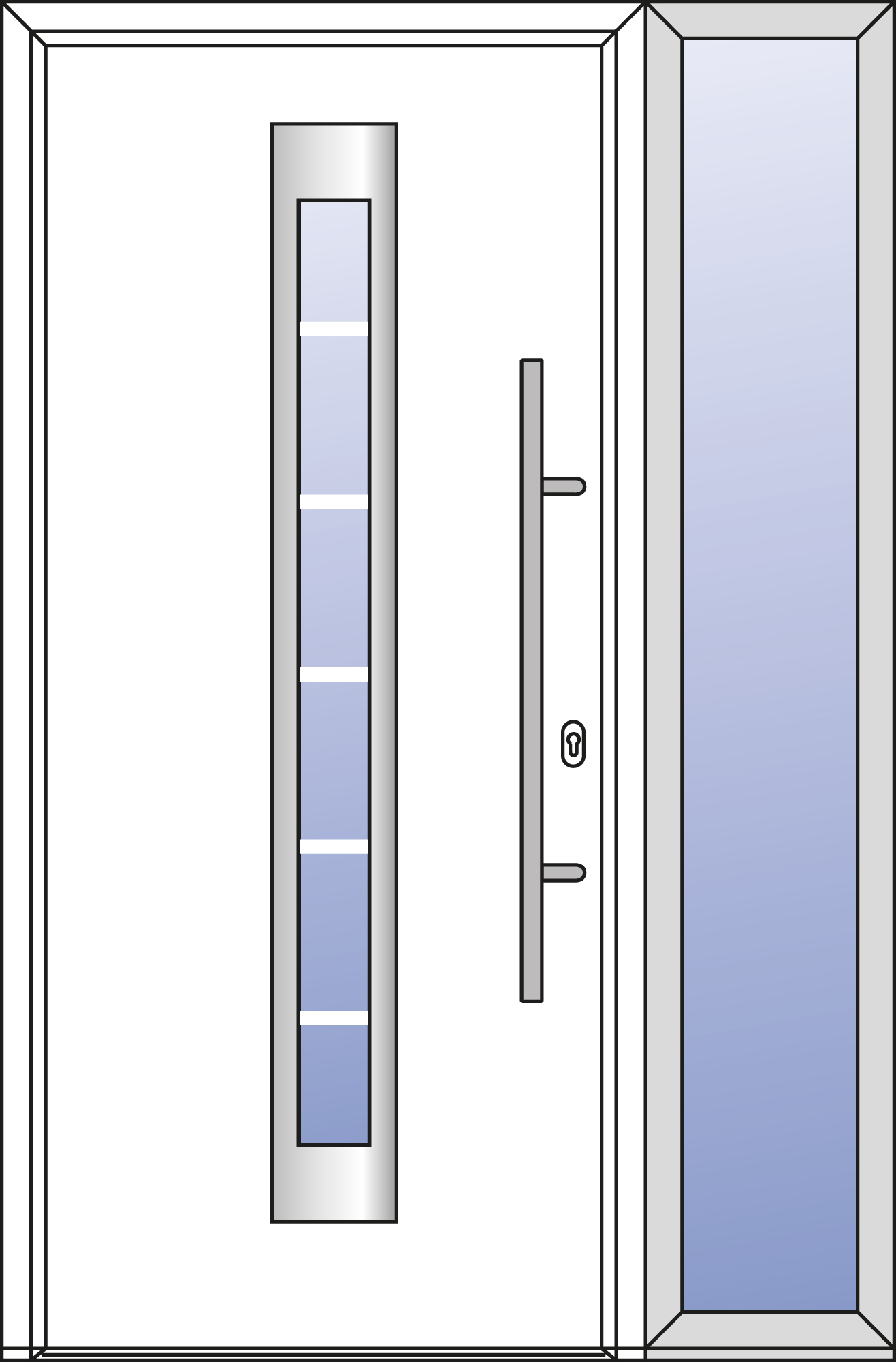 farblich passend zum Türblatt , thermisch getrennte Aluminium-Blockzarge als Profil A3 oder A4