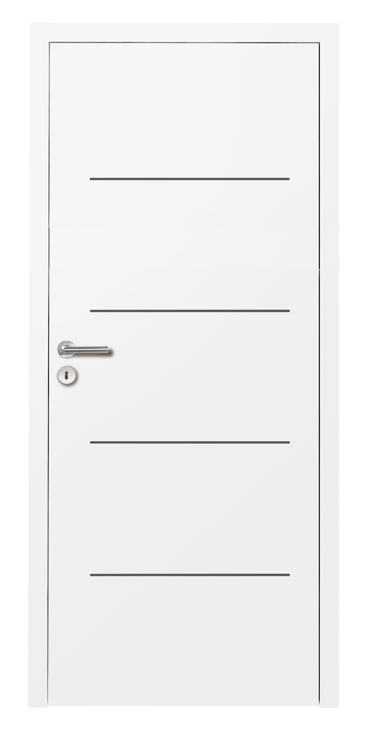Lisene: Türblatt mit flächenbündigen Applikationen, Breite 7 mm, Edelstahl‑Optik, Schwarz, Gold oder BronzeZargemit runder Kante
