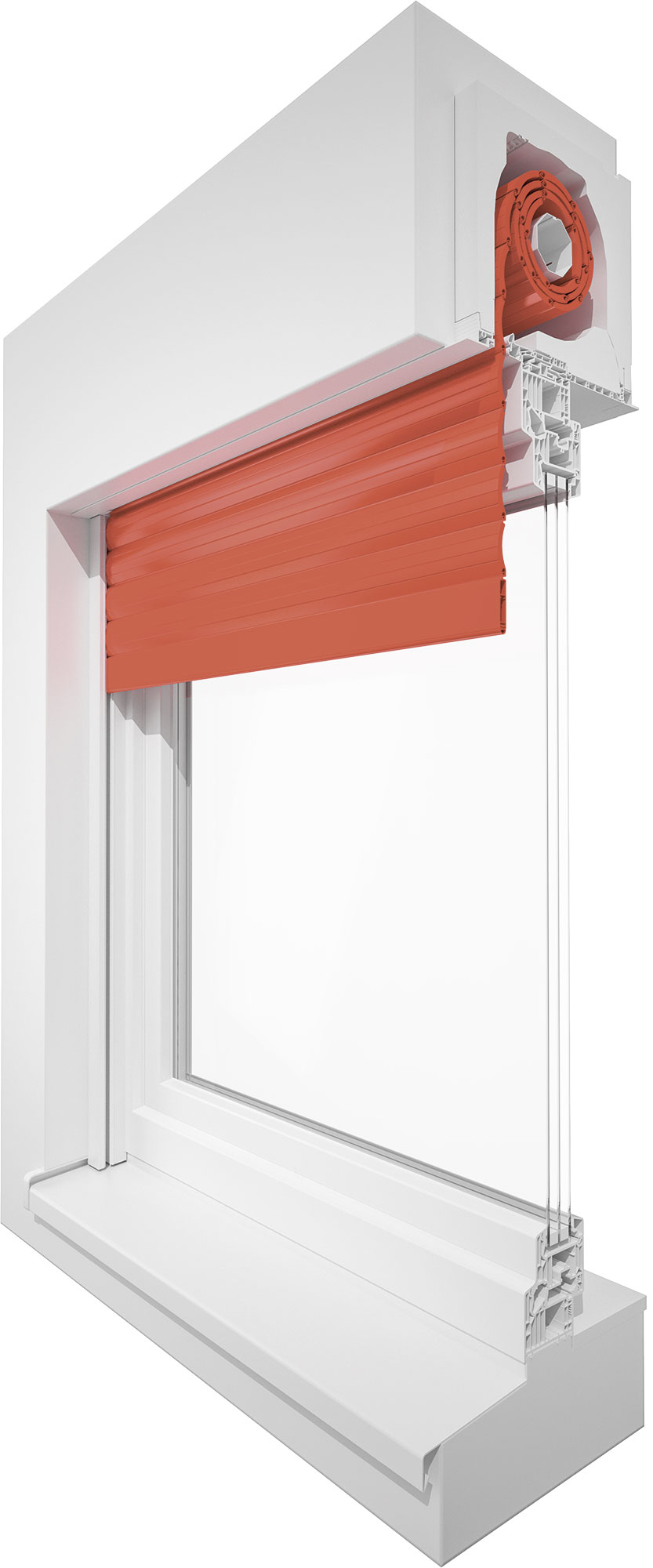 Die Rollladen-Elemente können optional mit integrierten Insektenschutz oder Glasabsturzsicherung ausgestattet werden.