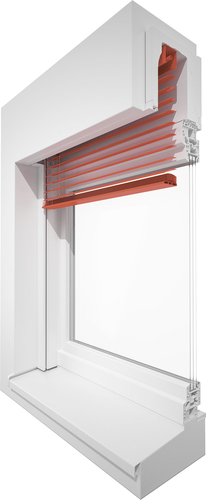 Die Rollladen-Elemente können optional mit integrierten Insektenschutz oder Glasabsturzsicherung ausgestattet werden.