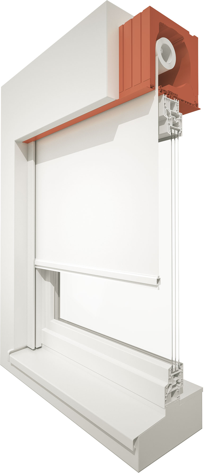 Der Kasten besteht aus speziell gefrästem EPS mit gerillter Oberfläche und wird über eine steckbare Konstruktion mit teleskopierbarer Walzenkapsel und Spezialkugellager ergänzt. Adapterprofile ermöglichen ein leichtes Aufclipsen oder Aufschrauben direkt auf das Fenster, während PVC- und Aluminiumwinkel für saubere Innen- und Außenabschlüsse sorgen.