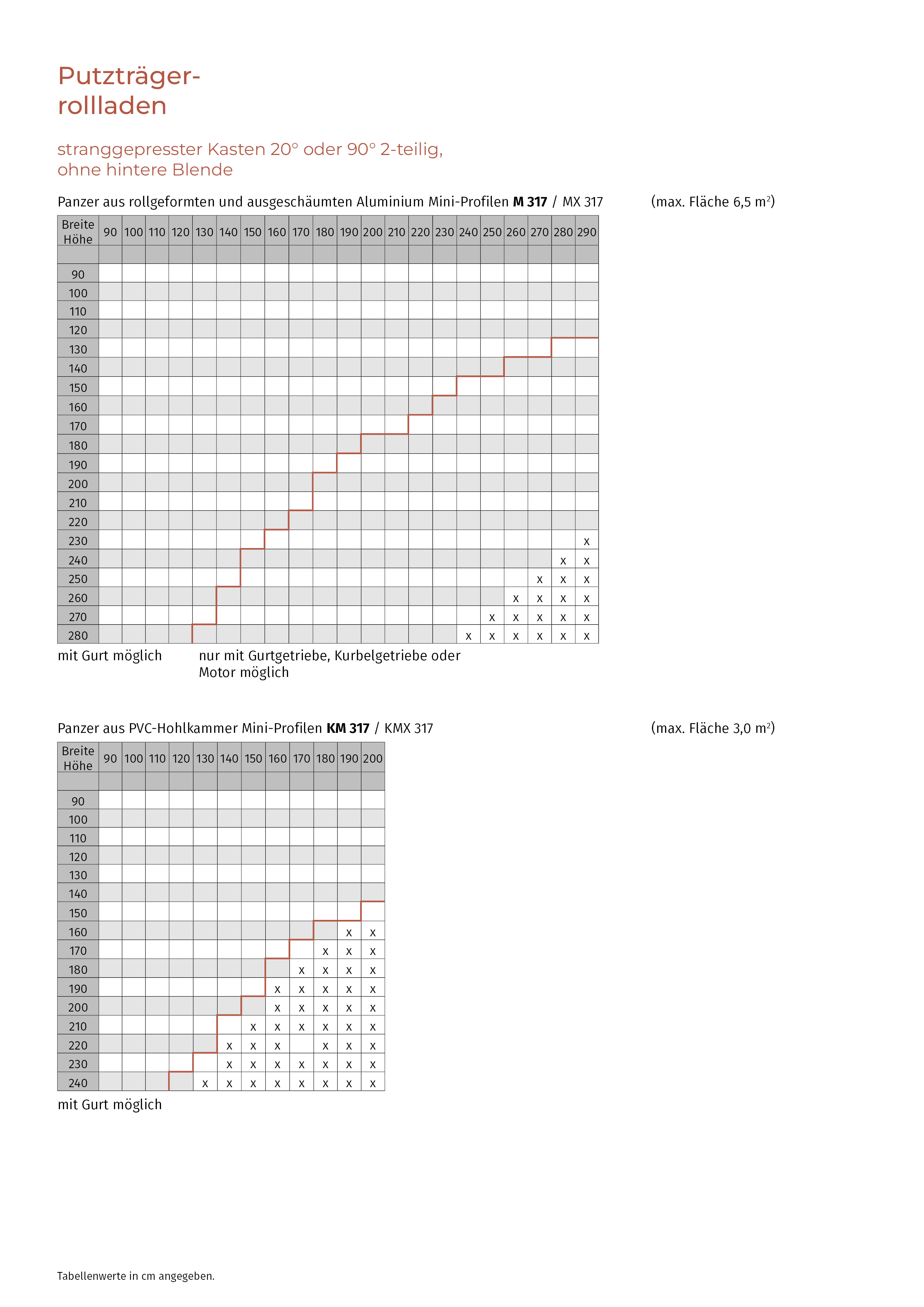 Das Aluminiumprofil M 317 ist ein ausgeschäumtes Aluminiumprofil, das durch seine hohe Formstabilität und Belastbarkeit überzeugt. Es bietet sehr gute Wärmedämm- und Schalldämmeigenschaften und ist zugleich langlebig, witterungsbeständig und pflegeleicht. Das Kunststoffprofil KM 317 besteht aus einem hochwertigen PVC-Rollladenprofil. Es ist besonders leicht, formstabil und kosteneffizient und eignet sich daher ideal für Renovierungen sowie budgetorientierte Modernisierungen.