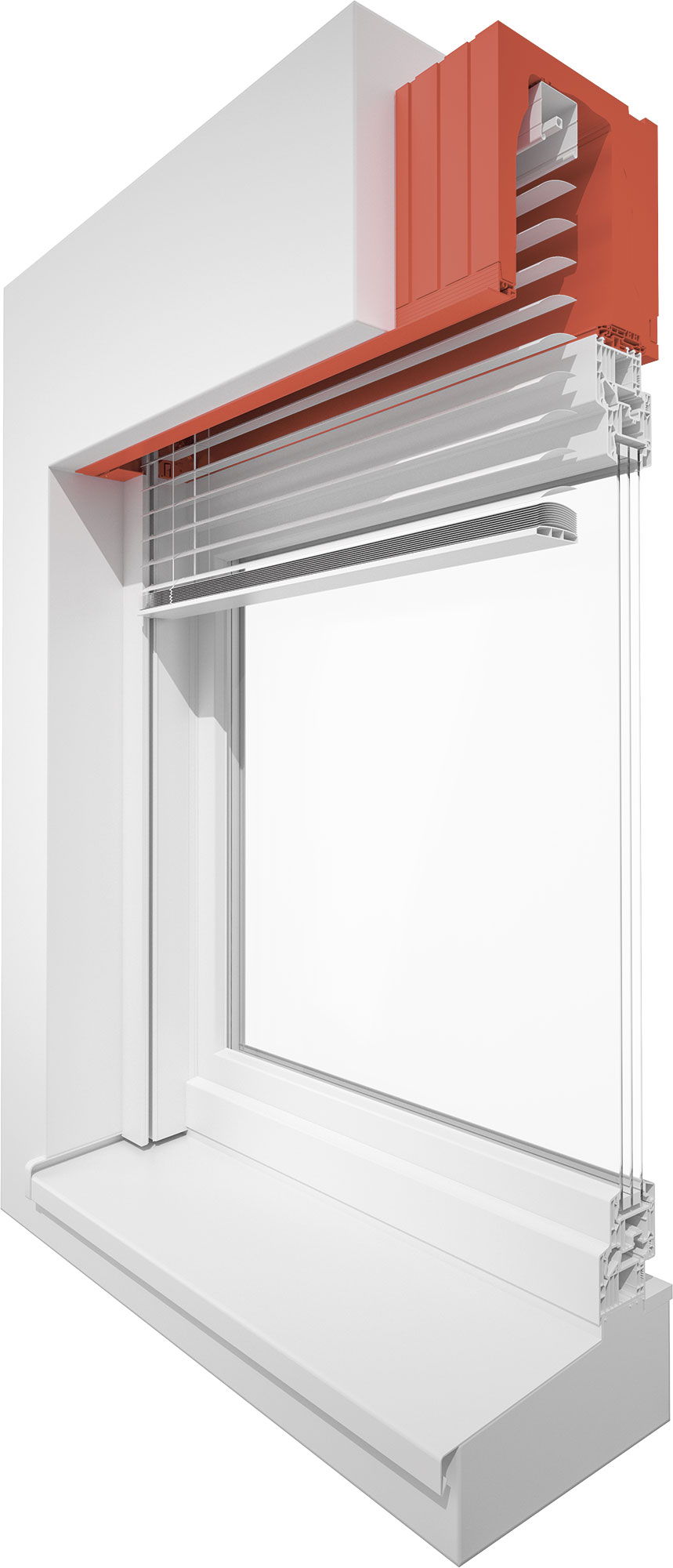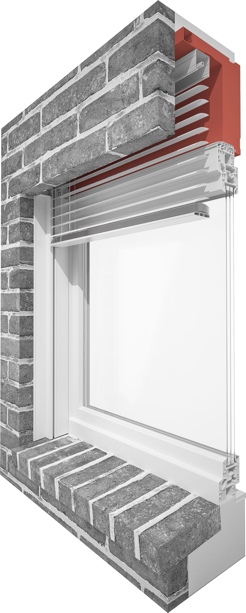 Mit seiner kompakten, wärmegedämmten Bauweise sorgt der geschäumte Aufsatzkasten nicht nur für hervorragende Dämmwerte, sondern auch für ein modernes und unauffälliges Erscheinungsbild an der Fassade. Der integrierte Raffstore bietet zuverlässigen Sonnenschutz, reguliert das Raumklima und steigert den Wohnkomfort – ganz gleich, ob im Sommer oder Winter.