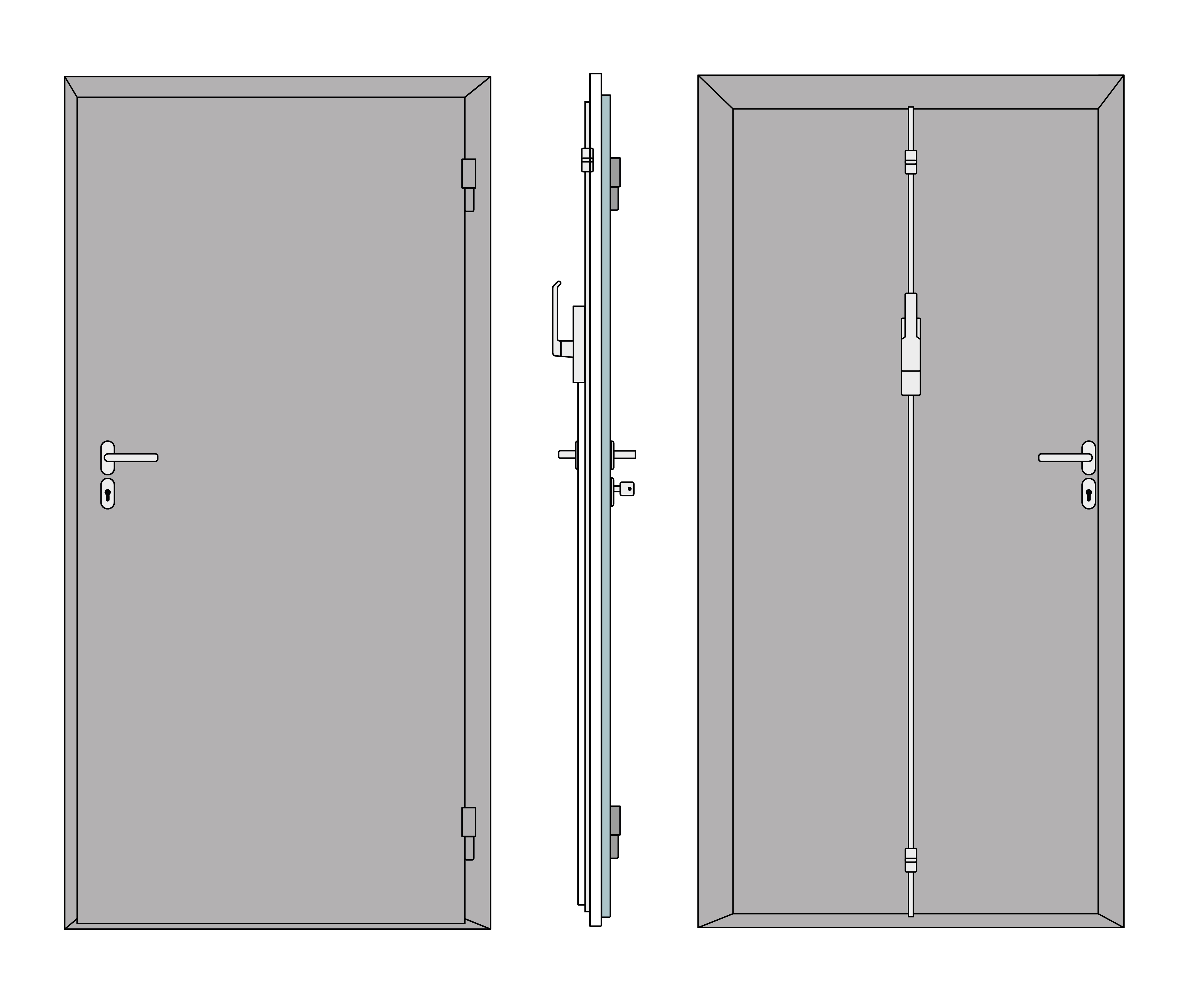 Aus stabilen, verwindungsfreien Profilstahlrohren nach statischen Erfordernissen. Türverschalung Außenseite massives, verzinktes Stahlblech, Türverschalung Innenseite Aluminium.