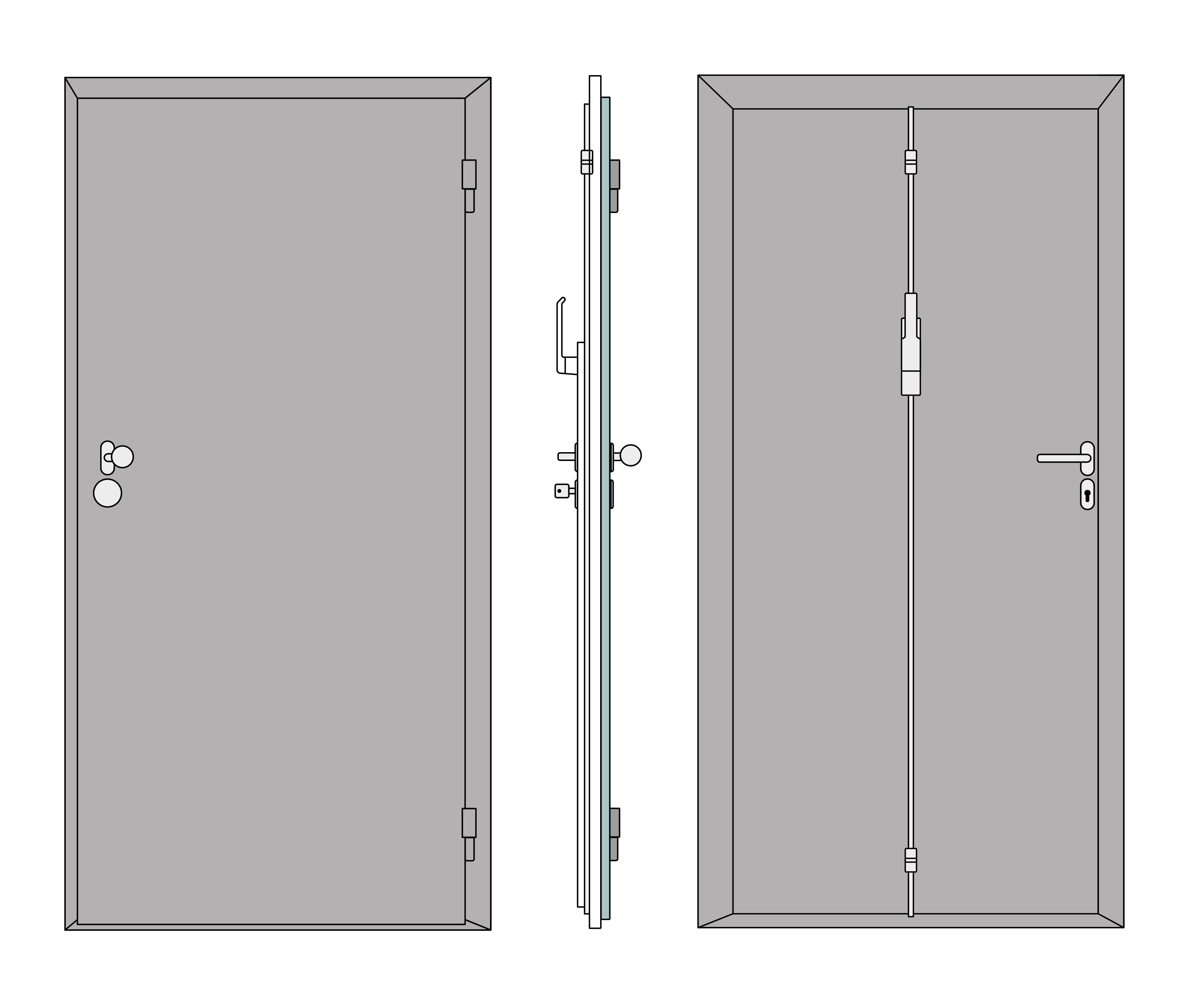 Aus stabilen, verwindungsfreien Profilstahlrohren nach statischen Erfordernissen. Türverschalung Außenseite massives, verzinktes Stahlblech, Türverschalung Innenseite Aluminium.