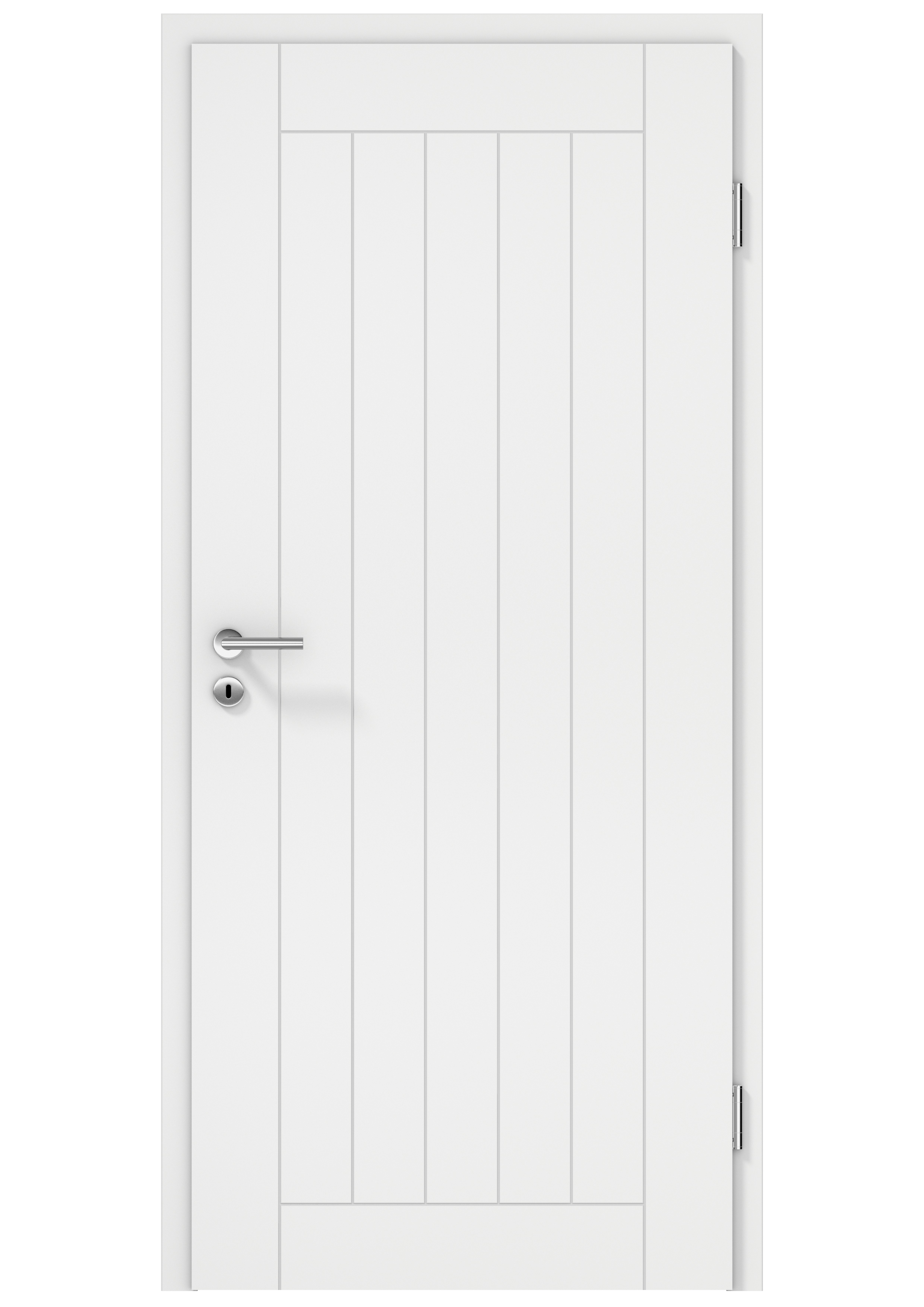 Türblatt: mit runder Türkante, optional mit eckiger oder stumpfer Türkante, siehe Ausstattung und Zubehör.Türblatt mit eingefrästen und lackierten, vertieften Fugen