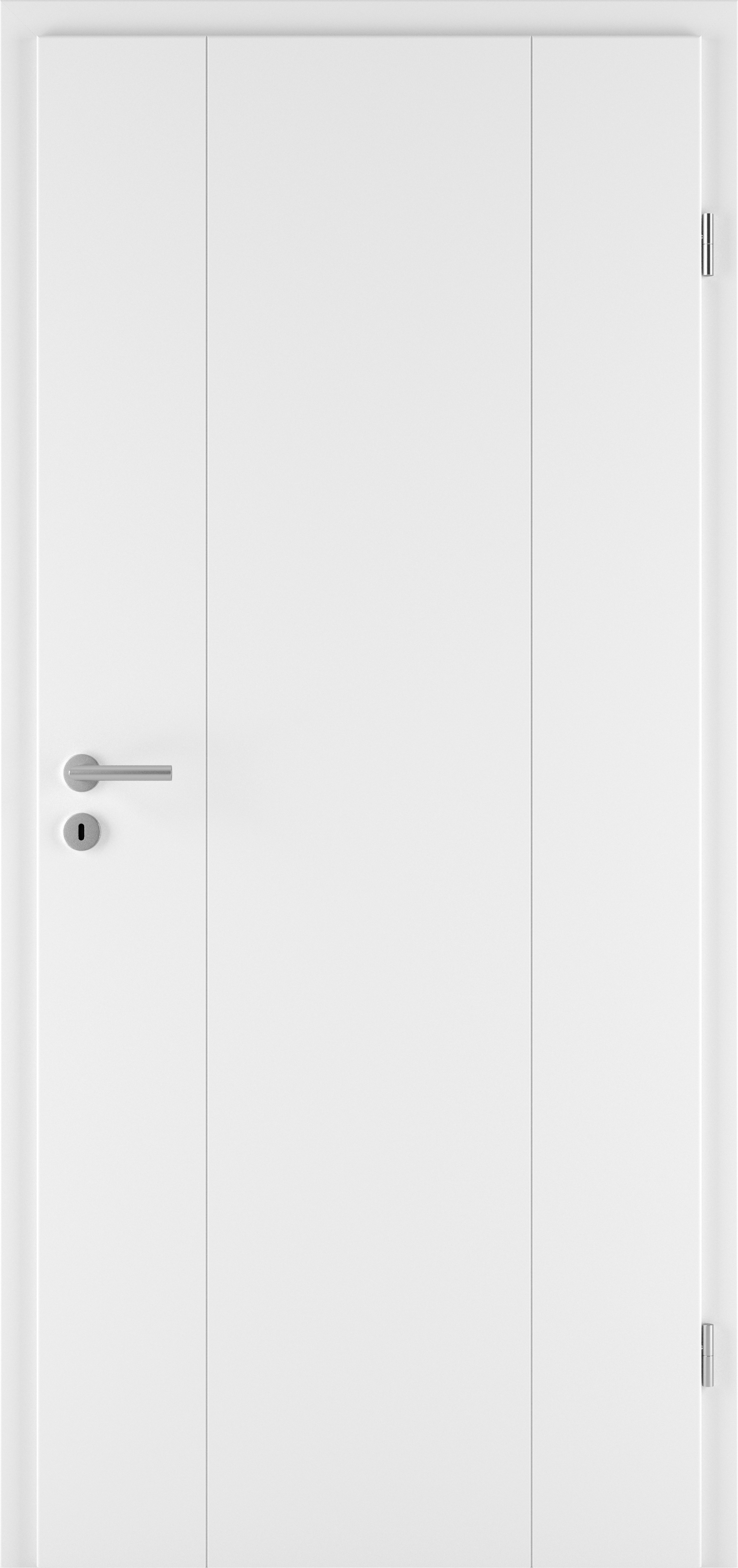 Türblatt: mit runder Türkante, optional mit eckiger oder stumpfer Türkante, siehe Ausstattung und Zubehör.Türblatt mit eingefrästen und lackierten, vertieften Fugen