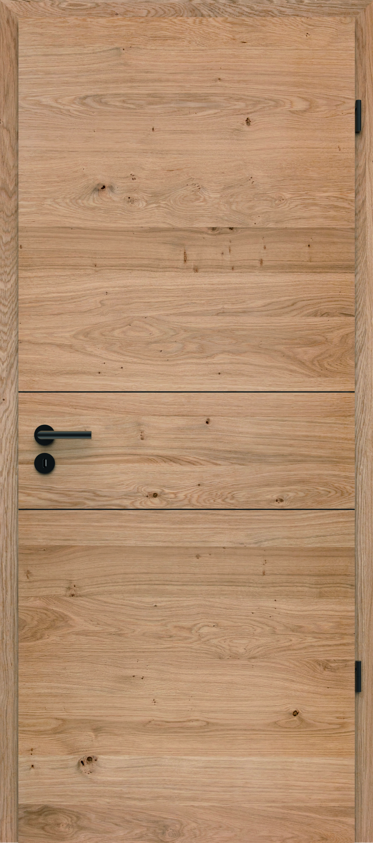 Türblatt: mit eckiger Türkante, optional mit stumpfer Türkante, siehe Ausstattung und ZubehörKanten in EchtholzTürblatt mit eingefrästen vertieften Fugen