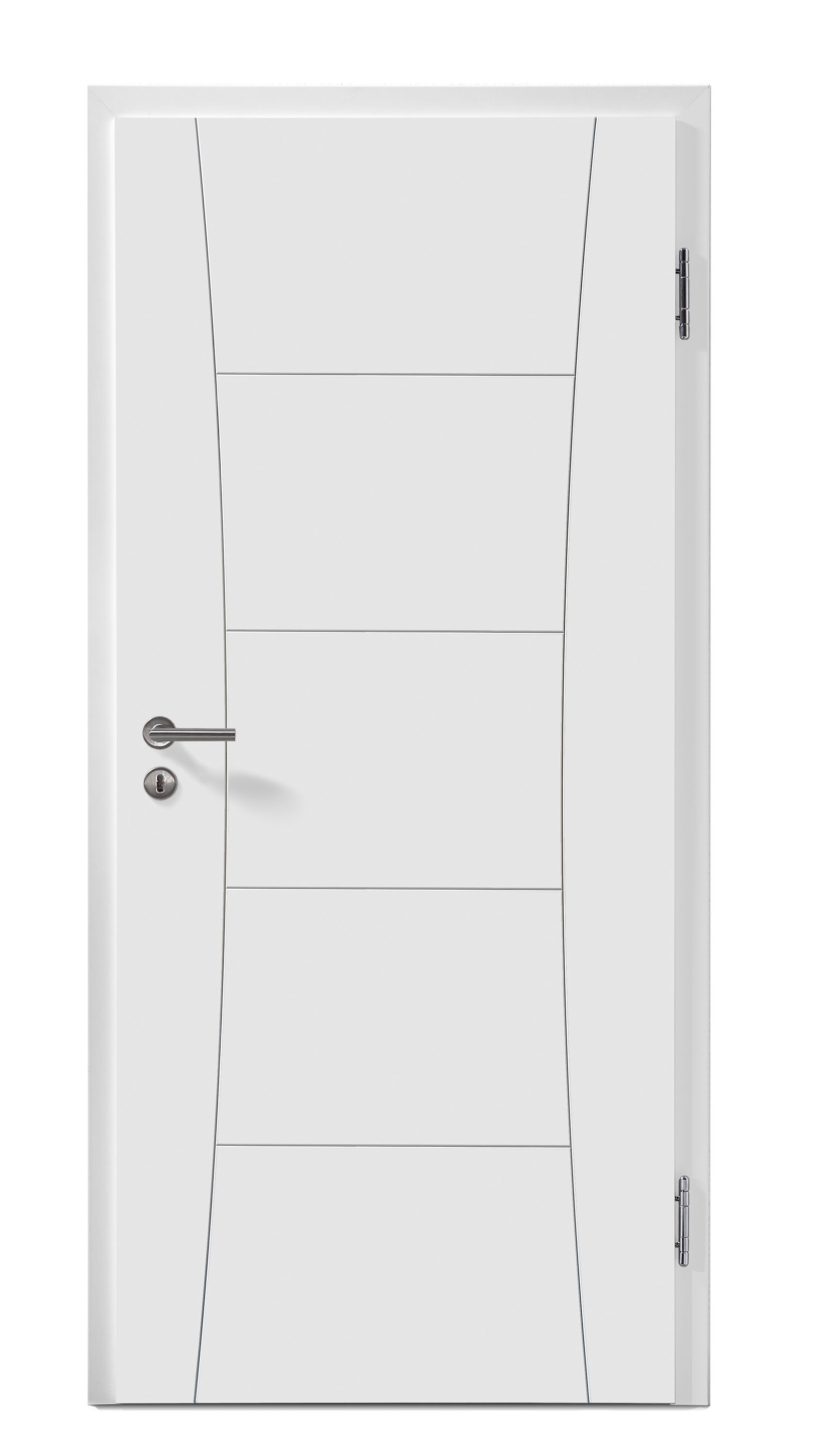 Türblatt: mit runder Türkante, optional mit eckiger oder stumpfer Türkante, siehe Ausstattung und Zubehör.Türblatt mit eingefrästen und lackierten, vertieften Fugen