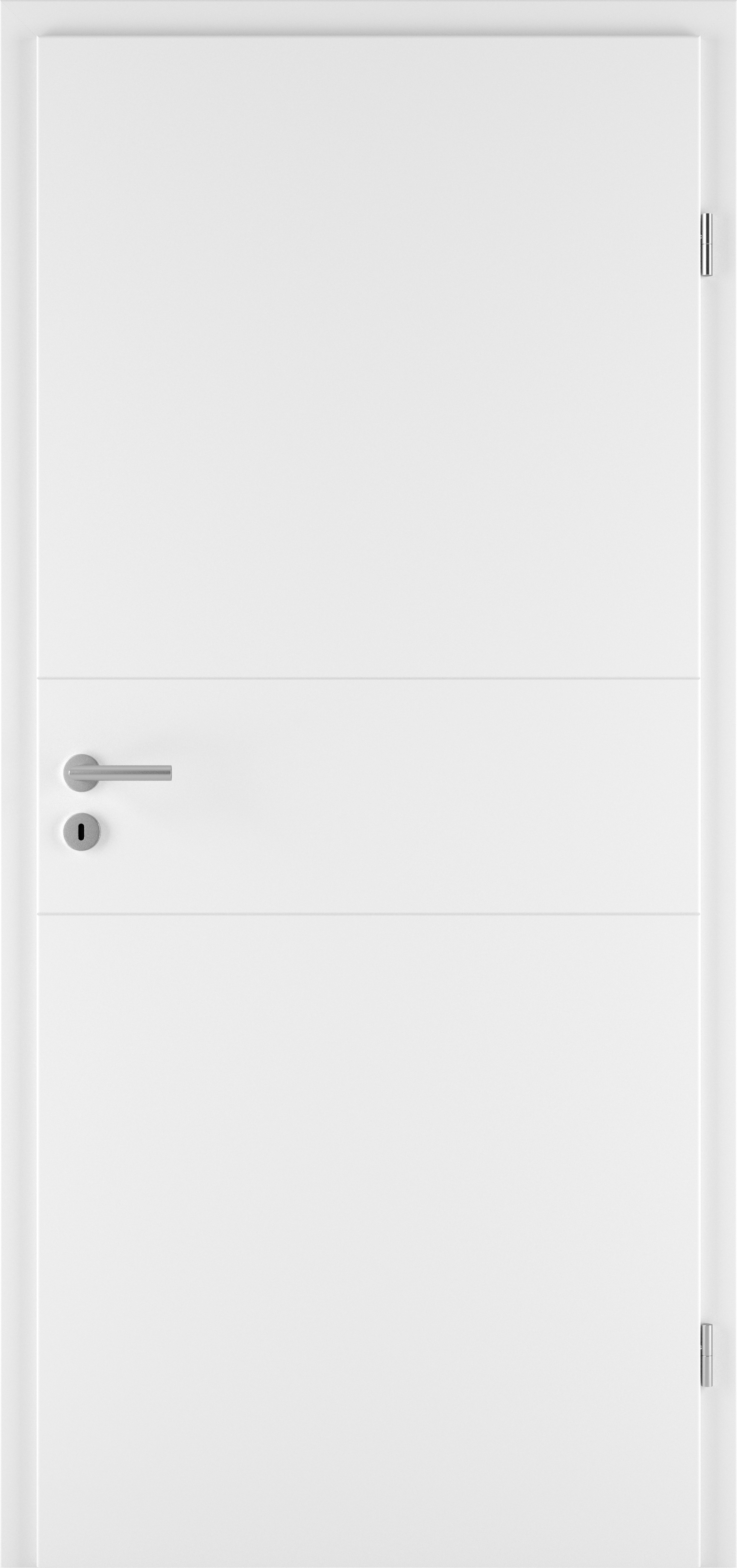 Türblatt: mit runder Türkante, optional mit eckiger oder stumpfer Türkante, siehe Ausstattung und Zubehör.Türblatt mit eingefrästen und lackierten, vertieften Fugen