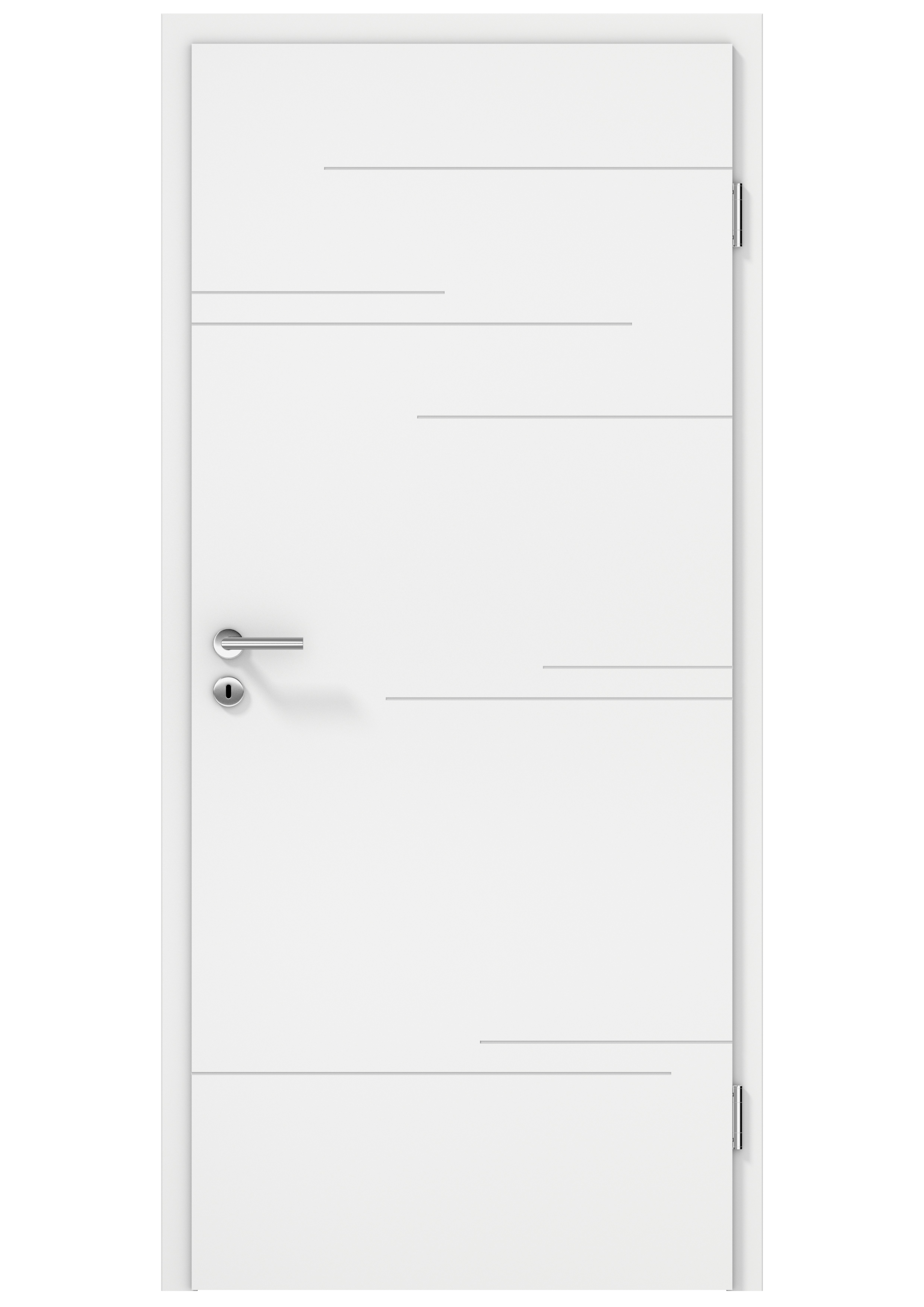Türblatt: mit runder Türkante, optional mit eckiger oder stumpfer Türkante, siehe Ausstattung und Zubehör.Türblatt mit eingefrästen und lackierten, vertieften Fugen