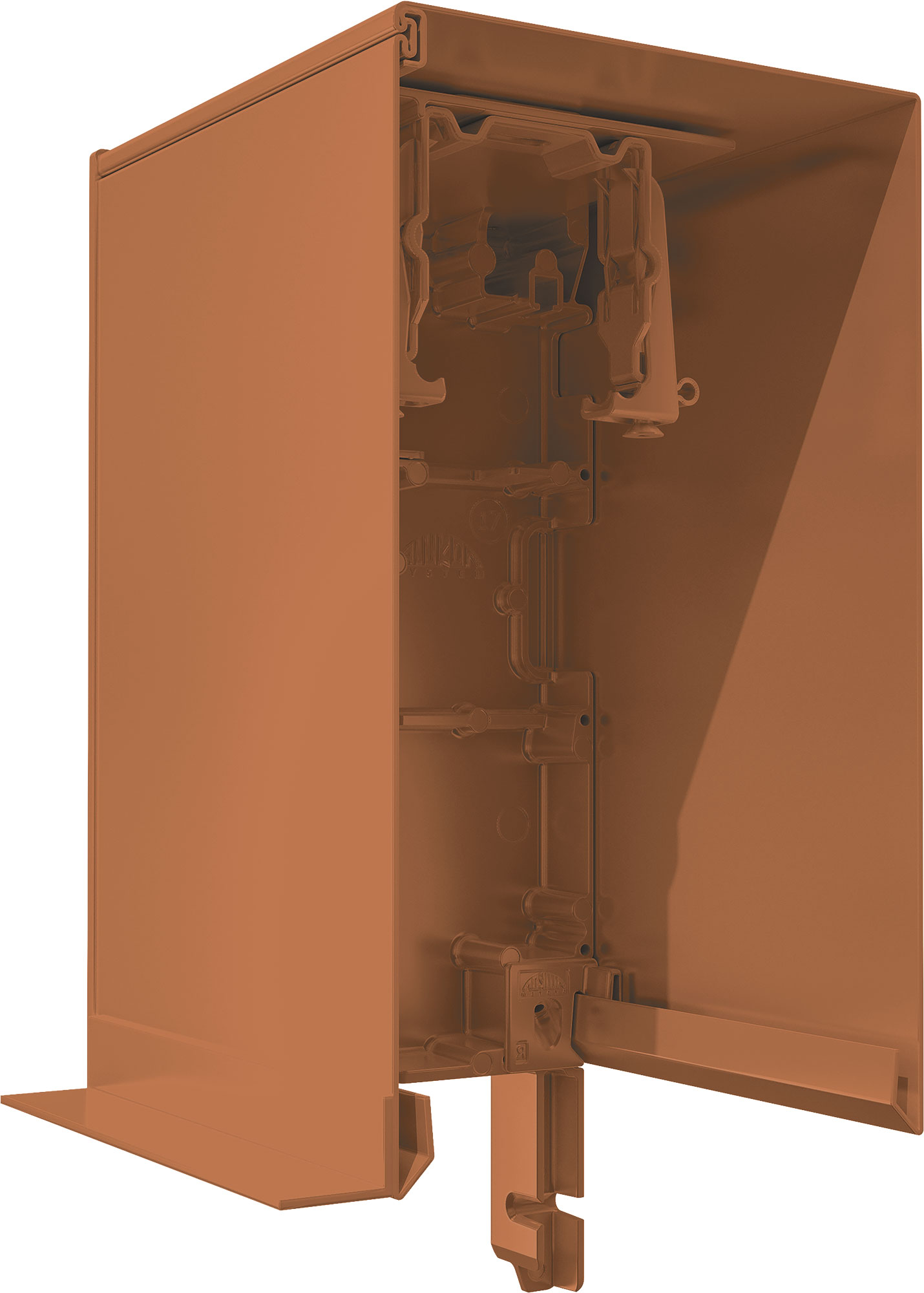Der robuste Kasten besteht je nach Ausführung aus rollgeformtem 1,2 mm oder gekantetem 2 mm Aluminium. Die Oberfläche ist pulverbeschichtet und einbrennlackiert, wodurch sie besonders witterungsbeständig und langlebig wird. Druckguss-Endkappen und eine verzinkte Oberschiene sorgen für zusätzliche Stabilität. Der Kasten ist in verschiedenen Größen und Farben verfügbar, sodass er sich optisch nahtlos in jedes Gebäude integrieren lässt.