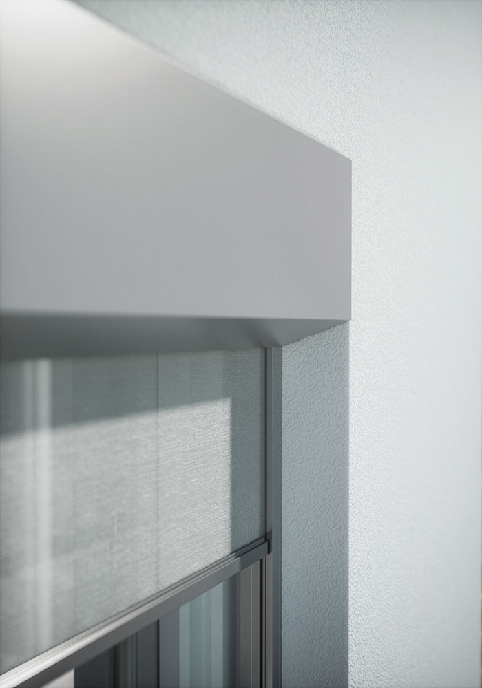 Der Fallstab aus stranggepresstem Aluminium mit Bürsteneinlage und seitlichen Gleitern gewährleistet eine sichere, windstabile Führung des Behanges. Abgerundet wird das System durch einen leistungsstarken Rohrmotor mit elektronischer Endabschaltung – für maximalen Komfort und präzise Steuerung.