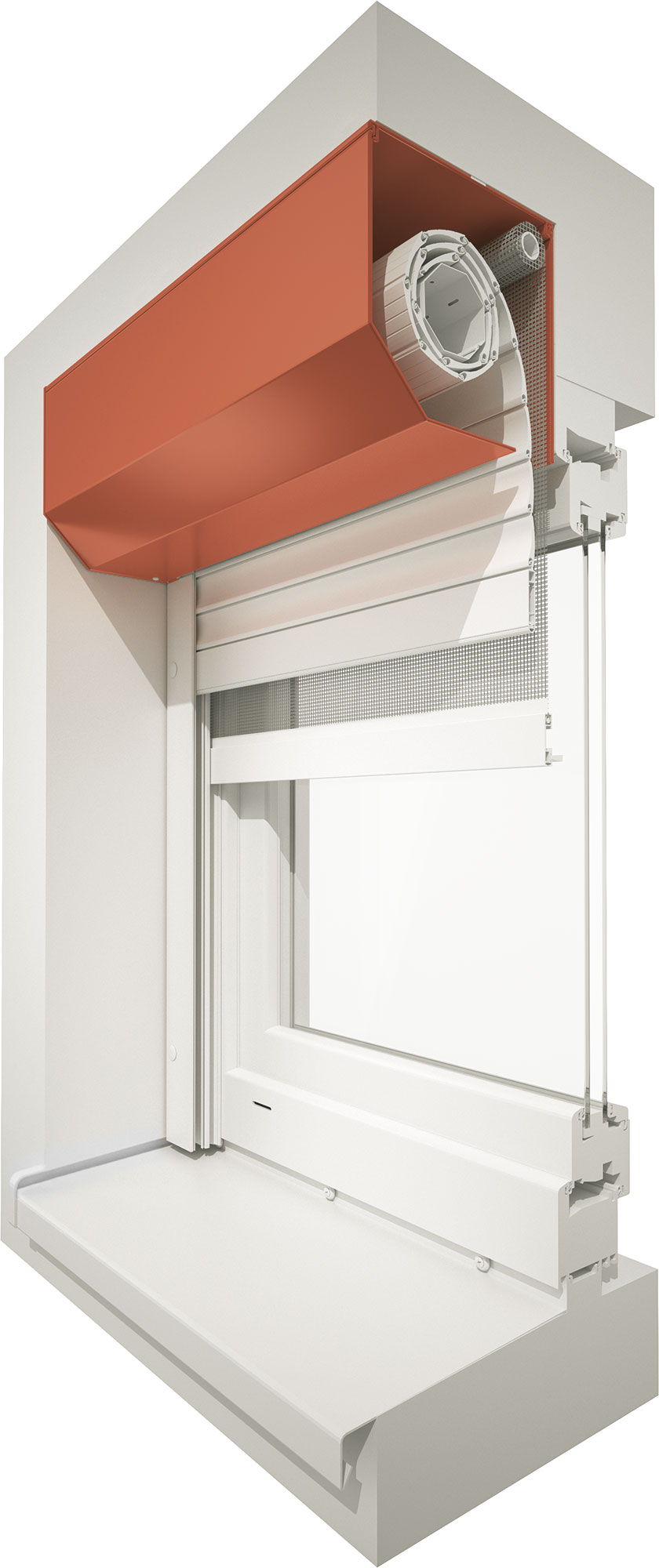 Optional lässt sich der Vorbaurollladen auch mit einem integrierten Insektenschutz ausstatten.