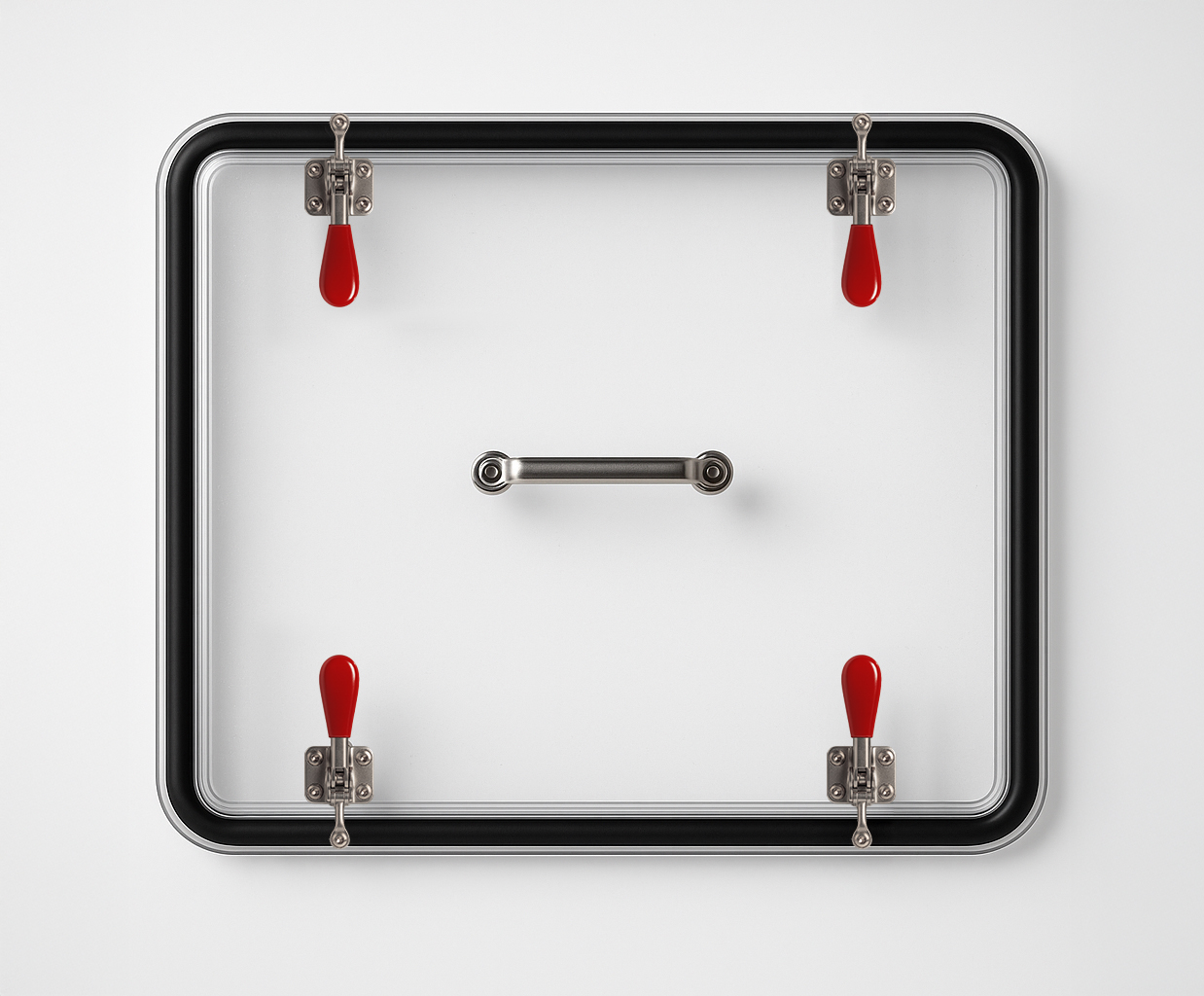 • Sollte der Kunde eine größere Luke bevorzugen, ist es möglich mit Hilfe von 15 mm starken Acrylglasstreifen umlaufend aufzudoppeln