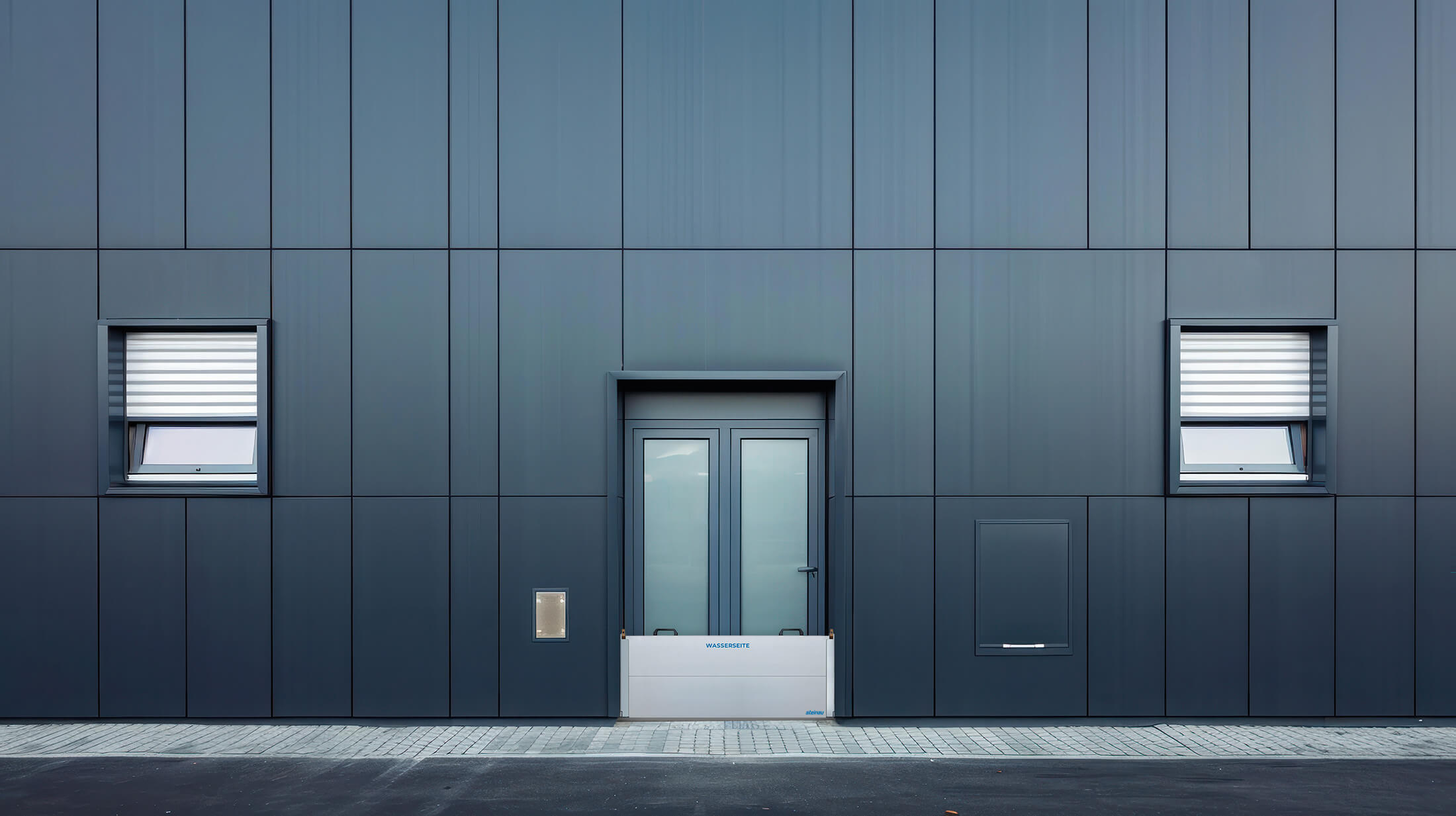 Die steinau Hochwasserschutz-Wand für den kombinierten Einbau – eine Seite vor der Öffnung, die andere innerhalb der Öffnung – besteht aus hochwertigen Aluminiumprofilen und bietet eine zuverlässige, effiziente Lösung zum Schutz Ihres Gebäudes vor plötzlich auftretenden Überschwemmungen.