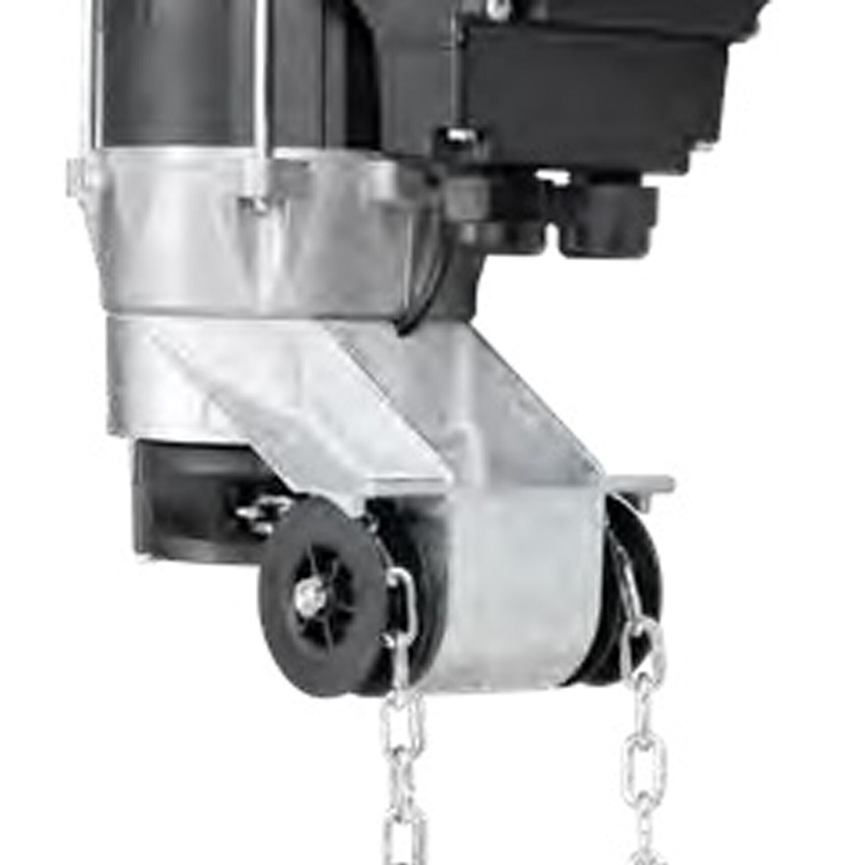 Die Antriebe mit Kettenbox empfehlen wir bei geringem seitlichen Platz bis zu 200 mm für alle Tortypen bis 7.500 mm Höhe. Bei den Beschlagsarten L und LD ist ein Antrieb mit Kettenbox notwendig. Durch die indirekte Kraftübertragung ist der Antrieb besonders torschonend.
