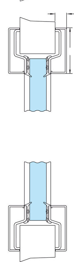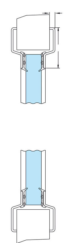 Die optionale Ergänzungszarge Vario B53 C Typ 1 (bis MW 270 mm) wird nachträglich unter die Eckzarge A Typ 1 oder A Typ 2 geschoben. Die Fixierung erfolgt mit den serienmäßigen Befestigungslaschen (Distanzstücke) der Eckzarge und ggf. durch zusätzliche Klemmlaschen. Weitere Befestigungen sowie eine Hinterfütterung der Ergänzungszarge sind grundsätzlich nicht erforderlich. Ein weiterer Vorteil: Durch die variable Maulweite (–5 mm bis +15 mm) können Wandtoleranzen bis zu 20 mm einfach ausgeglichen werden.