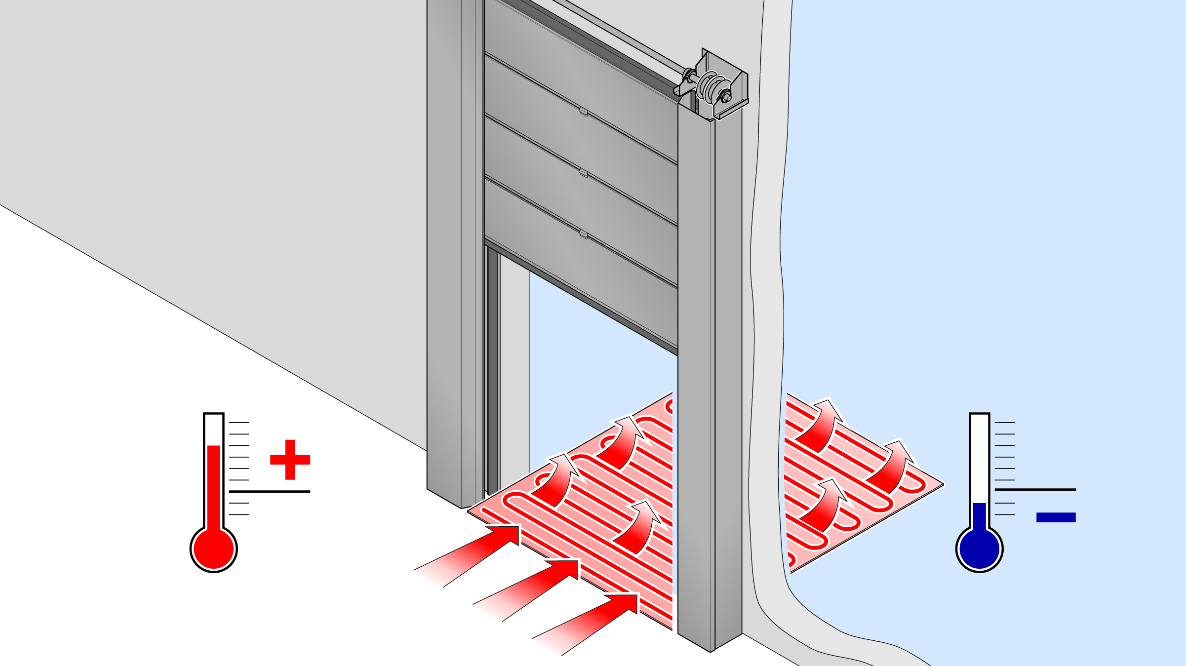 Die Blockzarge mit Heizung trägt maßgeblich zur Energieeffizienz und Langlebigkeit bei und verhindert das Festfrieren der Türdichtungen. Die serienmäßige Heizung in den Seitenteilen der Isoliertore vermeidet Vereisungen. So sorgen sie für einen effizienten Betrieb!