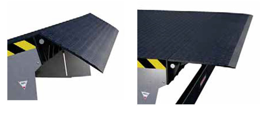 Die Klappkeil- und Vorschublippen bestehen aus einem Stück Tränenblech aus hochfestem Stahl S 355. Mit einer Materialstärke von 12 / 14 mm erfüllen sie alle Anforderungen an Robustheit und Langlebigkeit. Die stabile Lippe sorgt für eine sichere und gleichmäßige Auflage auf dem Fahrzeugboden und bietet damit die Basis für einen störungsfreien Ladeprozess.