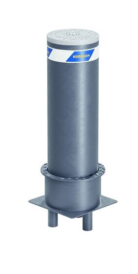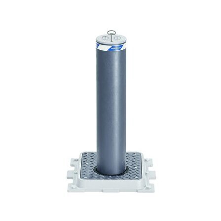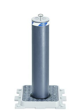 Feststehende Poller mit Bodenplatte sind ansichtsgleich zu automatischen und halbautomatischen Ausführungen und ermöglichen dadurch ein harmonisches Gesamtbild bei kombinierten Anlagen. Im Falle einer Beschädigung lassen sich die Zylinder einfach demontieren und austauschen.