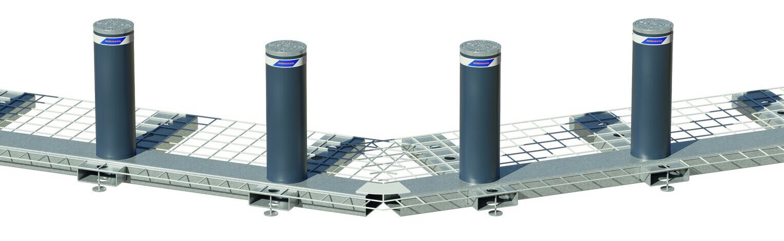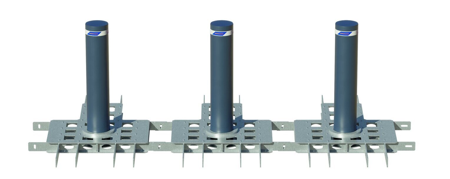 Modul mit drei Pollern in 90 °-Anordnung Bodenbefestigung im 90 °-Winkel mit drei feststehenden Pollern