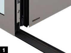 Unsere 1-flügligen Haustüren ohne Seitenteile sind jetzt serienmäßig mit einer Montagenut (1) ausgestattet, die eine verdeckt liegende Montage ohne sichtbare Schraubenköpfe ermöglicht. Eine hochwertige Abdeckleiste (2) überdeckt die Nut, sodass eine schöne, homogene Profilansicht im Falzbereich entsteht.