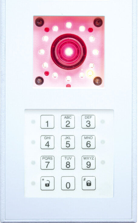 Fluchttürterminal mit Codetastatur, Nottaster und Piktogramm, weiß