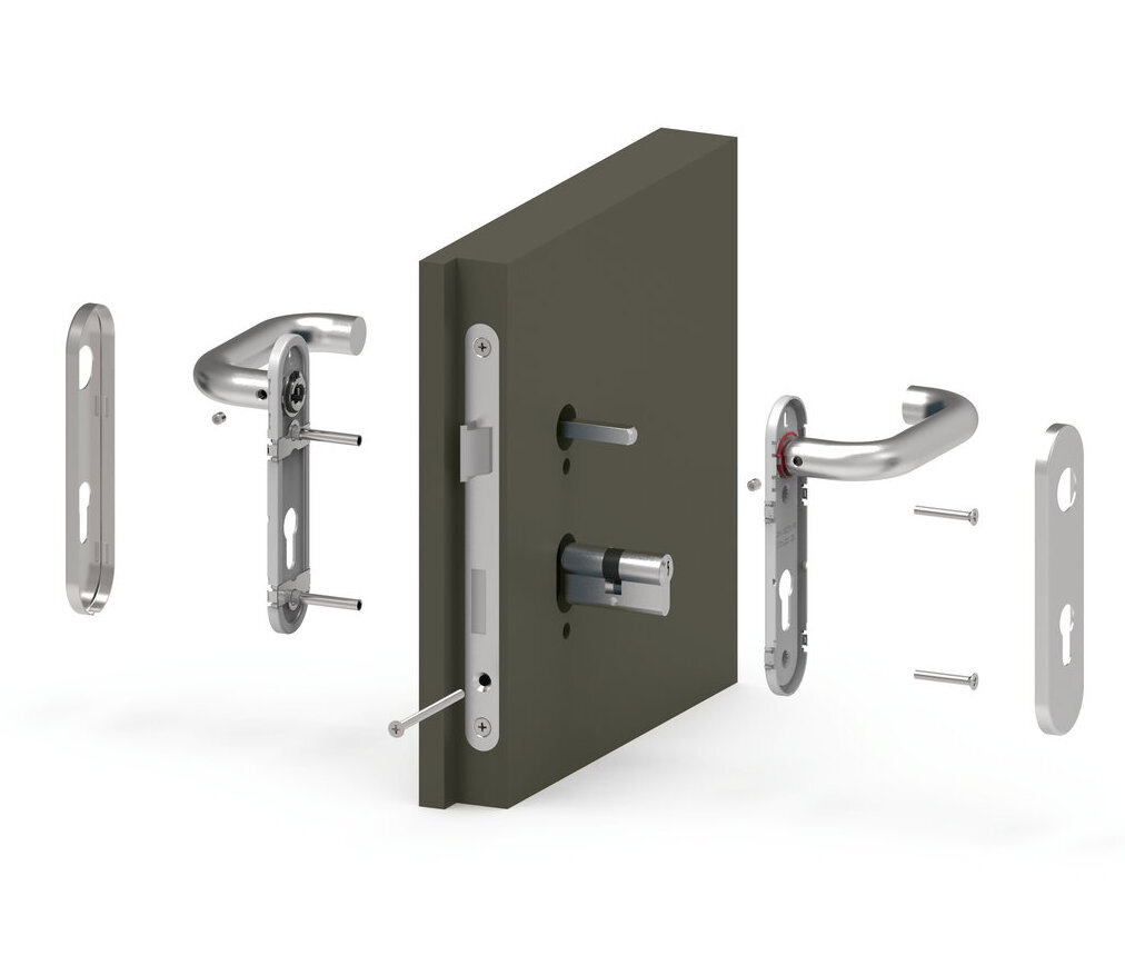 Die Garnituren aus Edelstahl sind für höchste Ansprüche geeignet. Die Gängigkeit des Drückers ist satt gelagert und sehr hochwertig. Integrierte Rückhol-Druckfedern sichern den Rückstellmechanismus des Schlosses. Eine Wellfederscheibe egalisiert axiales Spiel des Lagers.