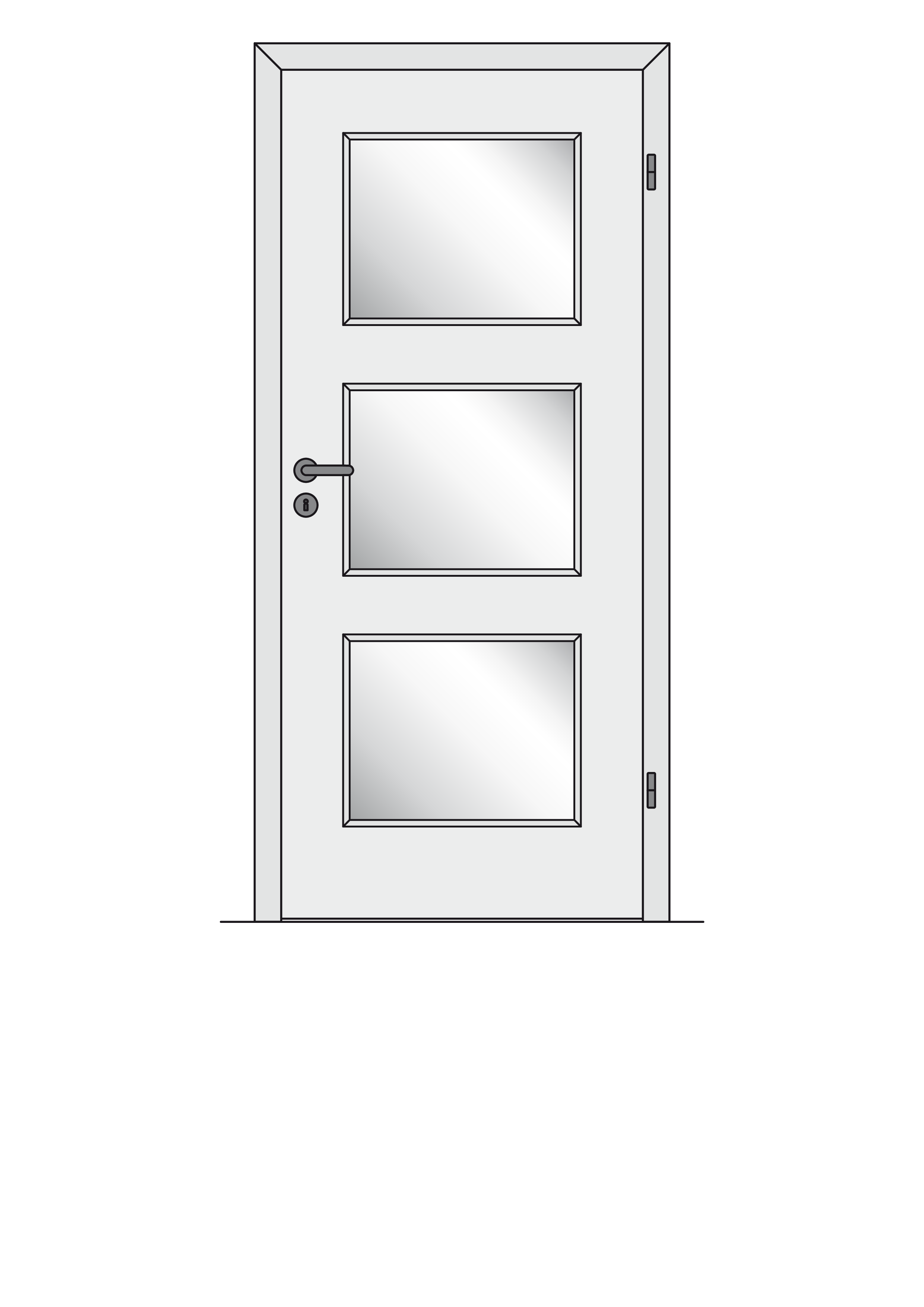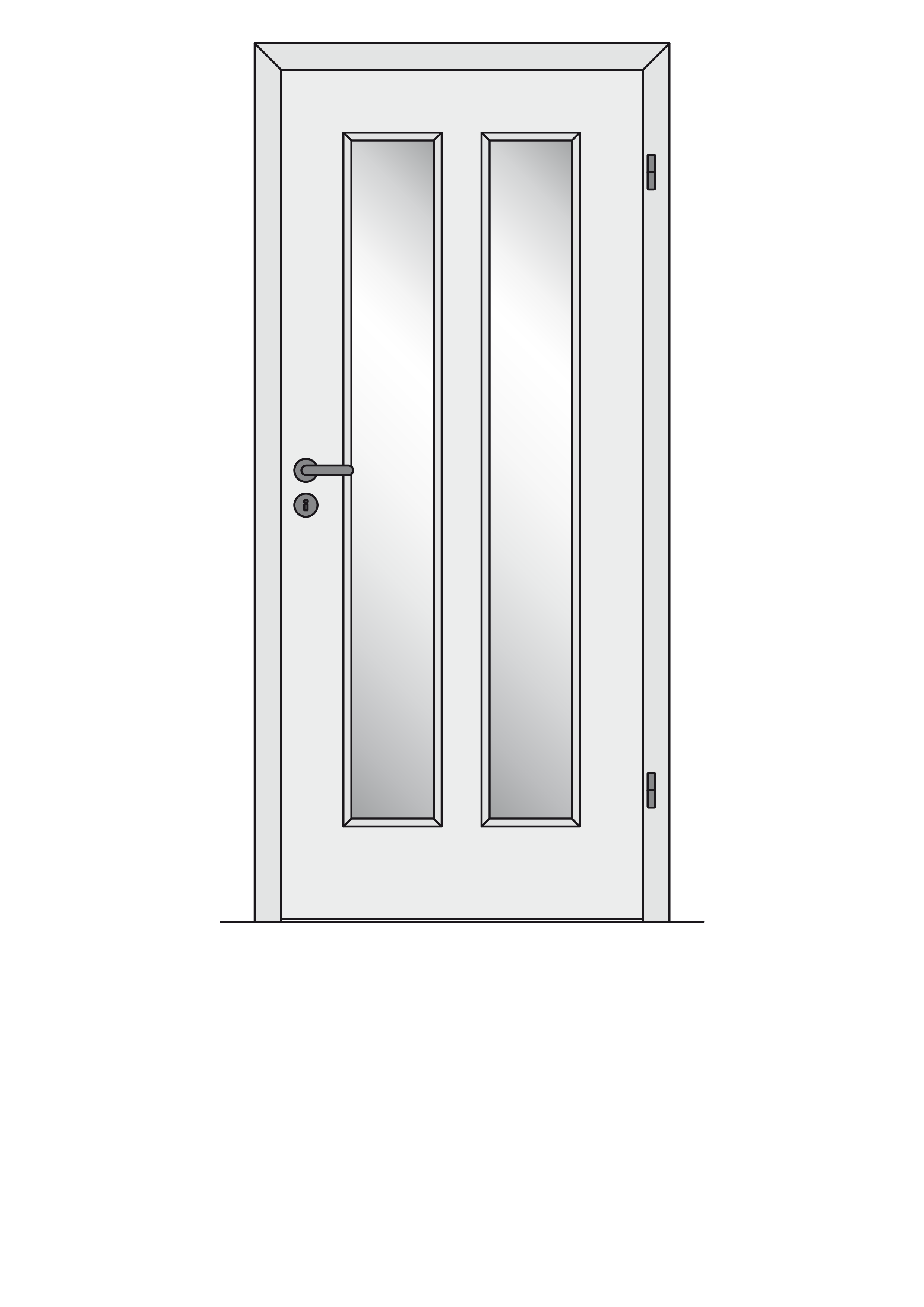 | Bänder | 2 × V 0020 WF vernickelt, über Türbreite 985 mm 2 × V 0026 WF vernickelt, über Türhöhe 2235 mm 2 × VX 160-18 vernickelt | 2 × Euroband verdeckt 3 D, silberfarbig, über Türbreite 959 mm/Türhöhe 2222 mm 2 × DX 61 3D verdeckt, silberfarbig |